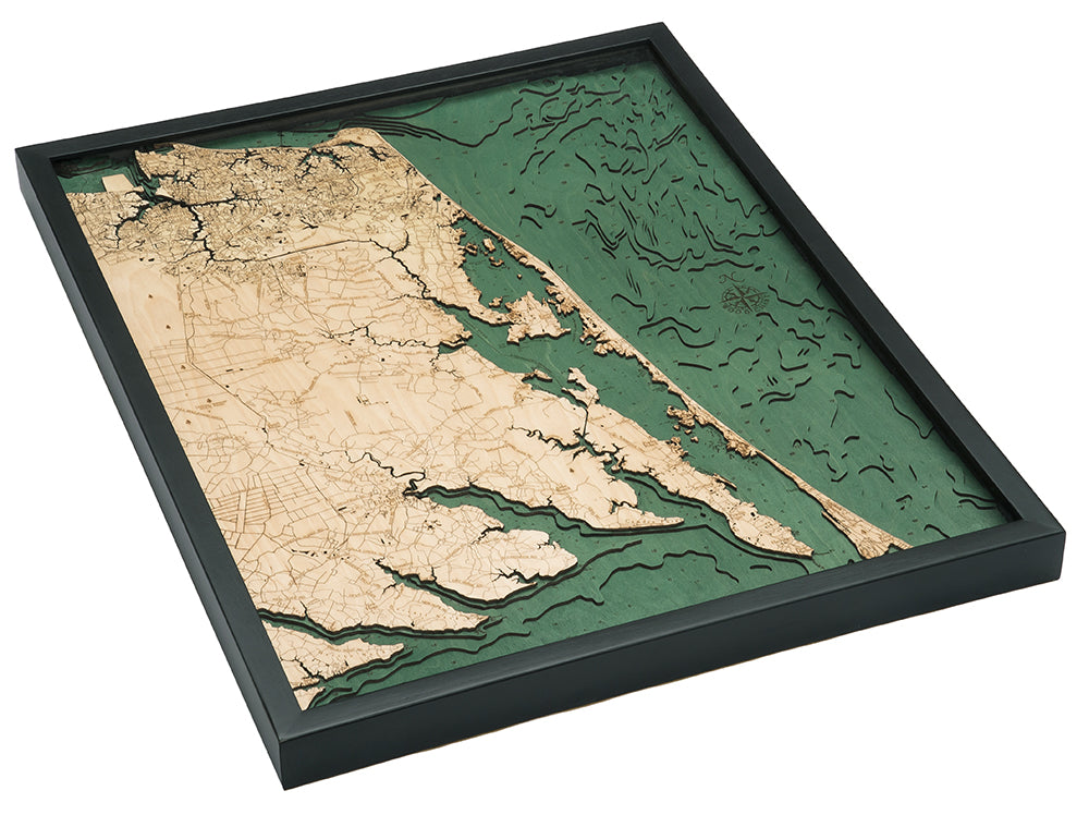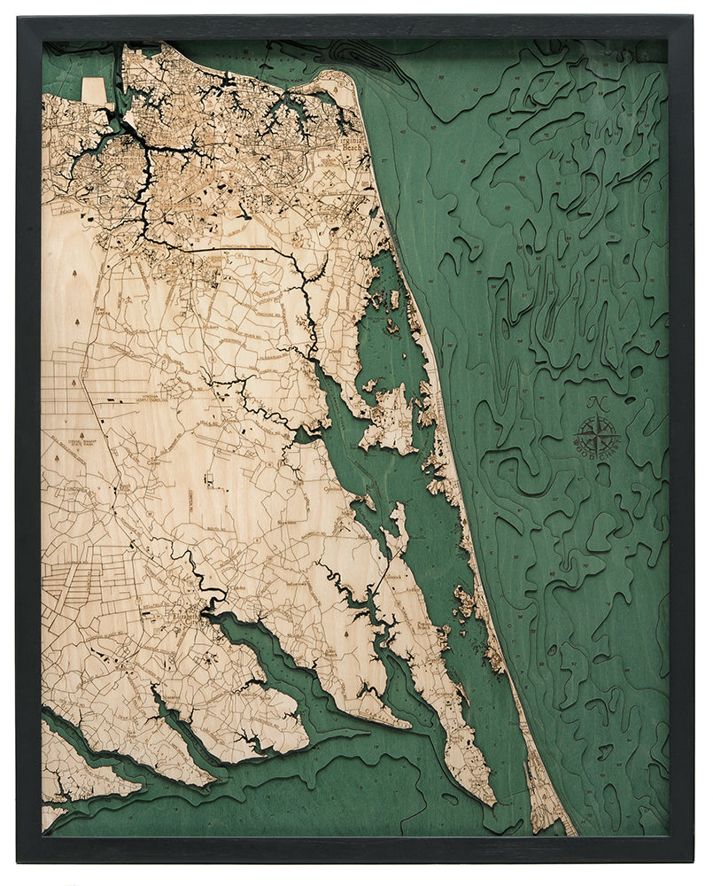 Virginia Beach to Kitty Hawk 3-D Nautical Wood Chart, Large, 24.5" x 31"