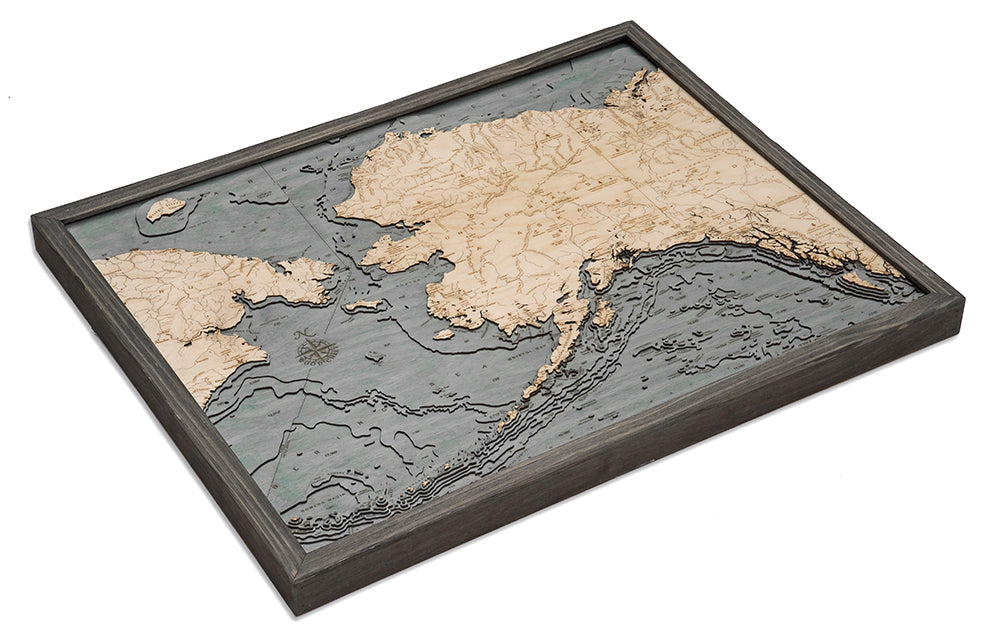 Alaska 3-D Nautical Wood Chart, Large, 24.5" x 31"