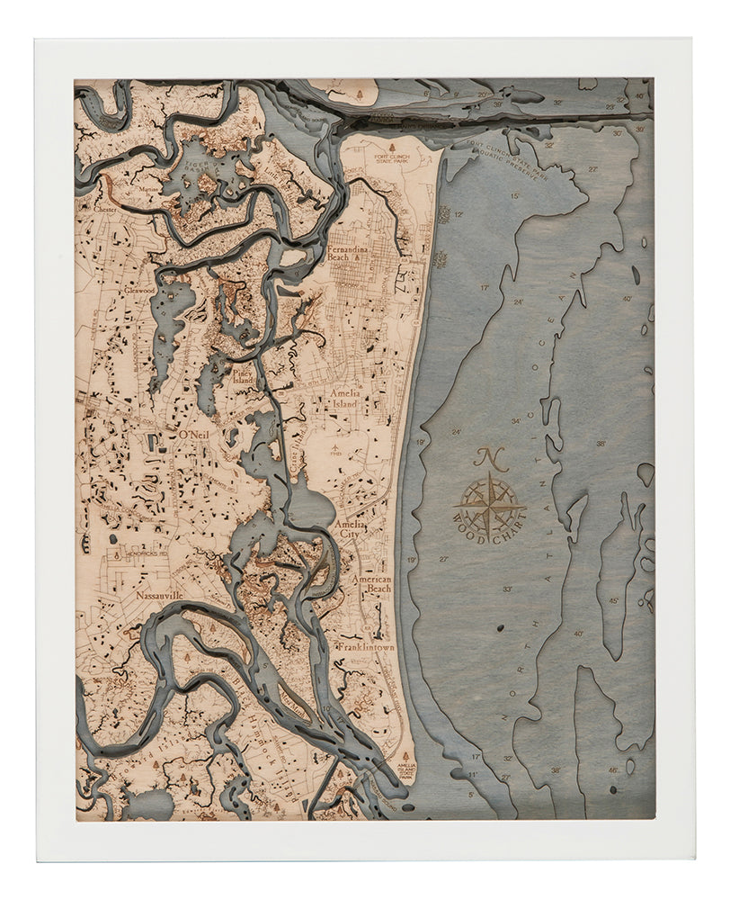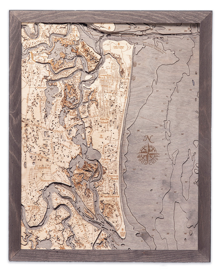 Amelia Island 3-D Nautical Wood Chart, Small, 16" x 20"
