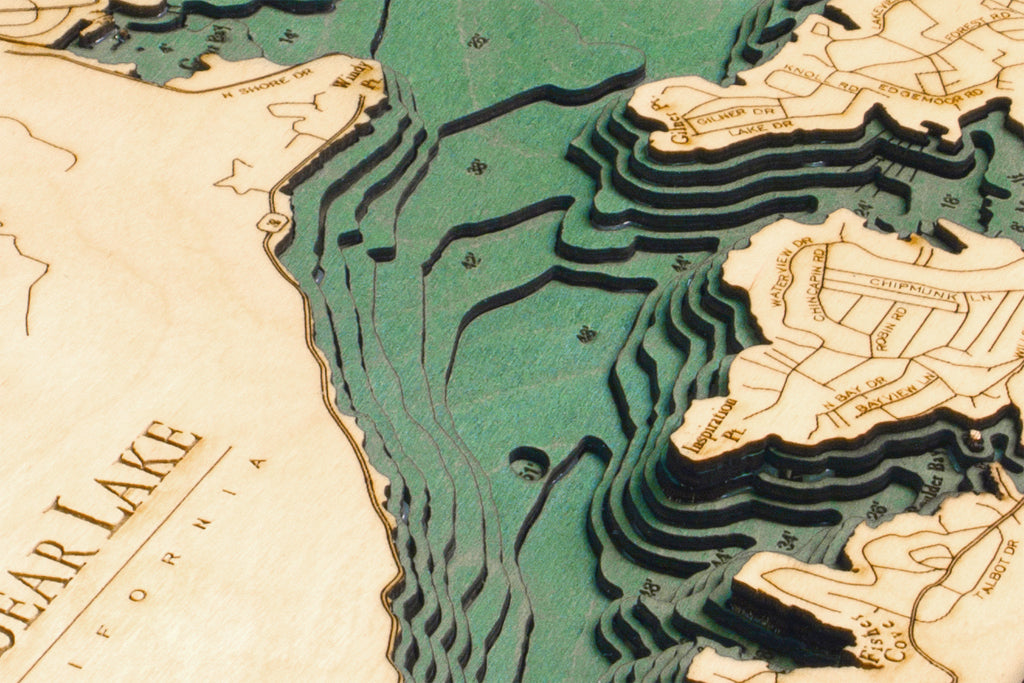 Big Bear Lake, California 3-D Nautical Wood Chart, Medium, 13.5" x 31"