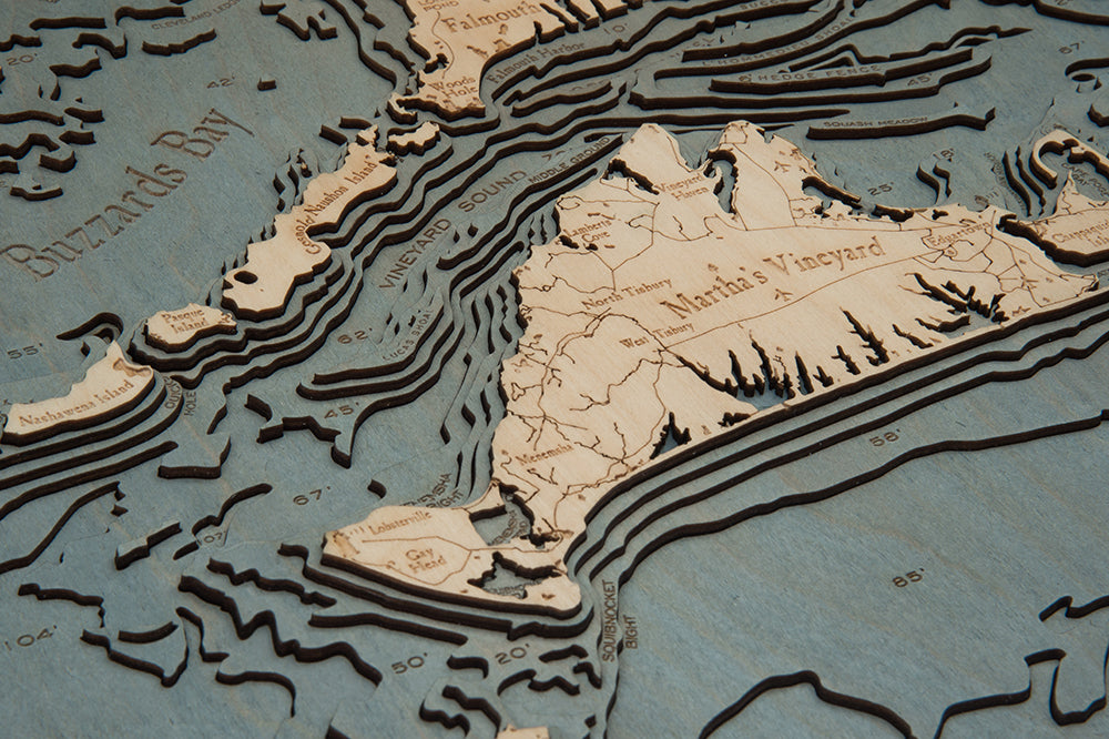 Our Cape Cod 3D wood map is one of a kind and is made with incredible attention to detail. Layers of Birch are cut into layers that depict the beautiful ocean terrain. An artist glues the layers together to create the gorgeous depth our customers know and love and then hand-stains the surrounding water a beautiful blue-green. Points of interest and locations are carved into the 3D wood map’s surface before a custom wood frame finishes the complete lake map and creates a perfect piece of wall art.