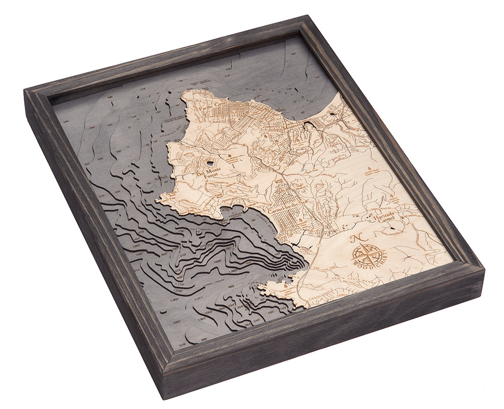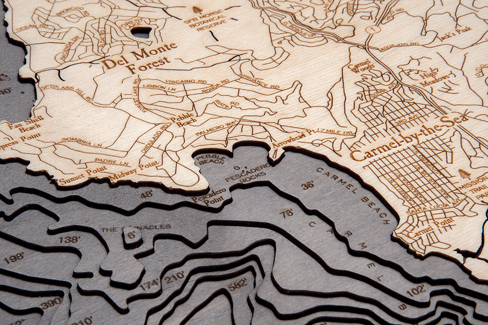 Carmel / Monterey, California 3-D Nautical Wood Chart, Small, 16"x20"
