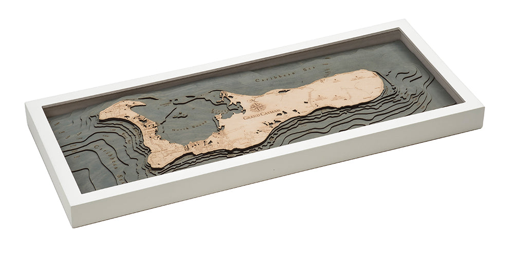 Allow your mind to take a mental vacation to the white sand beaches of Grand Cayman with this stunning nautical 3D wood map.