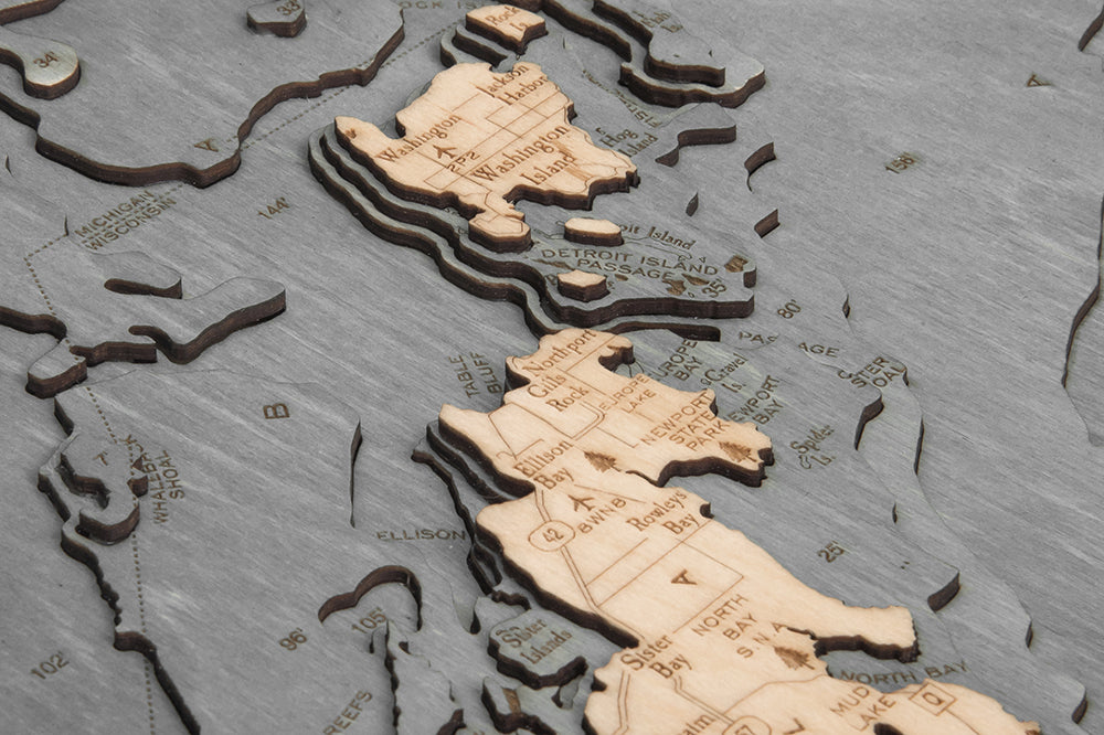 Green Bay / Door County, Wisconsin 3-D Nautical Wood Chart, Large, 24.5" x 31"