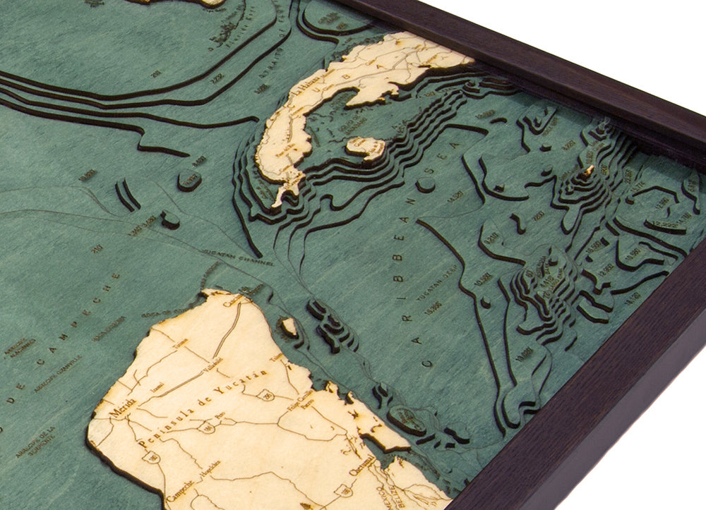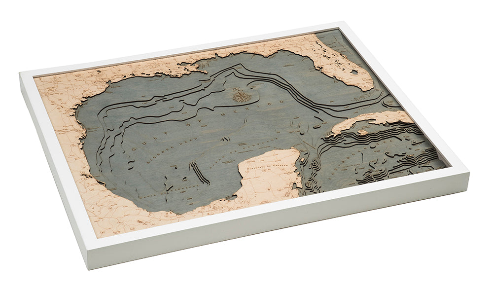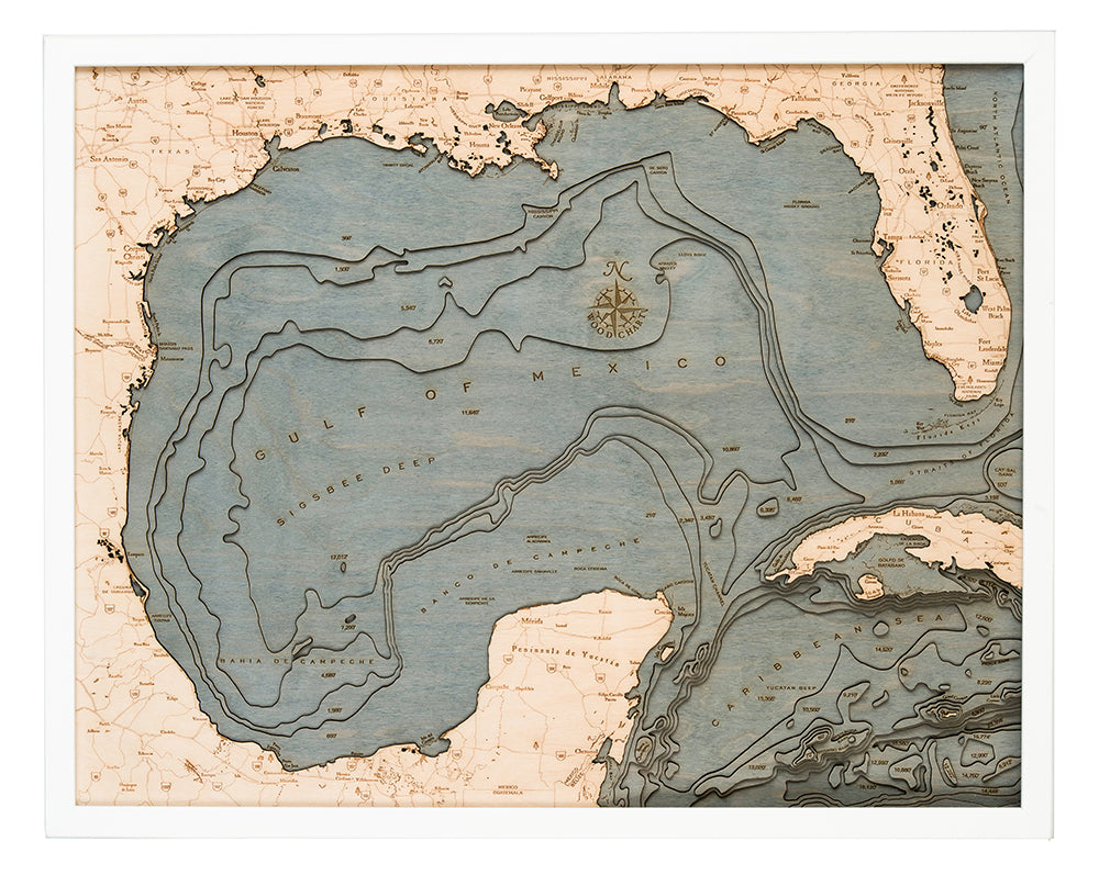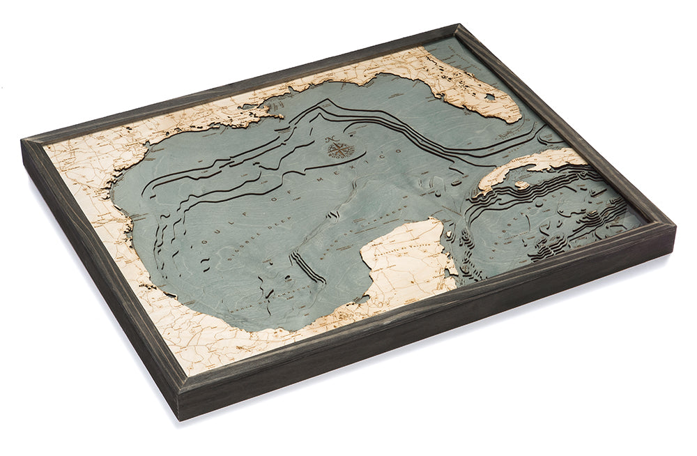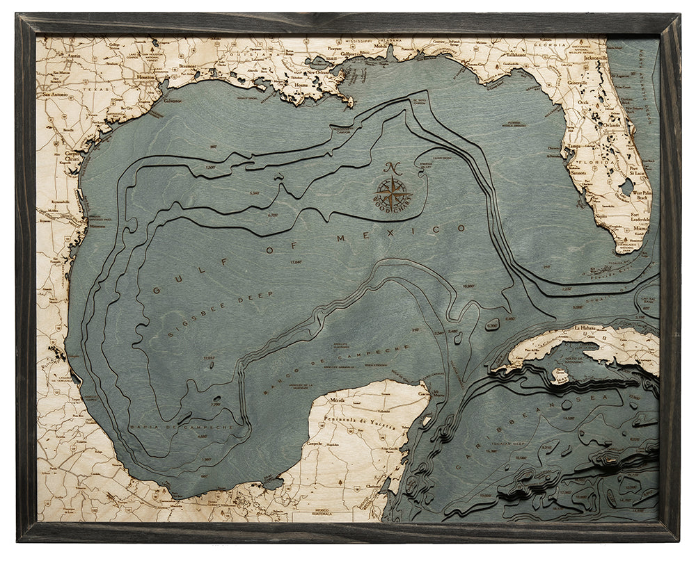 Gulf of Mexico 3-D Nautical Wood Chart, Large, 24.5" x 31"