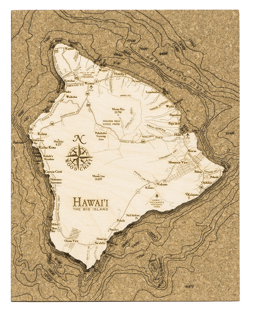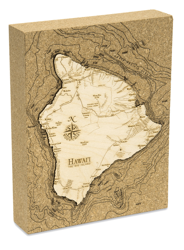 Put your love of the Big Island on display with our cork wood chart of the island of Hawai’i.