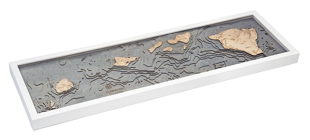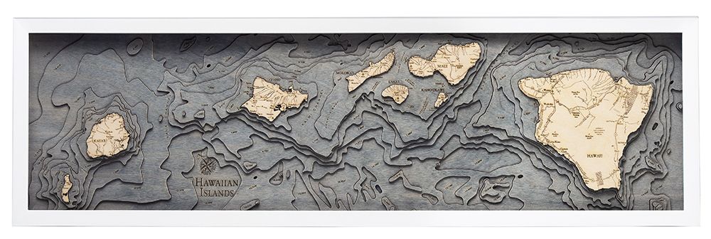 Hawaiian Islands (all of them), Hawaii 3-D Nautical Wood Chart, Narrow, 13.5" x 43"