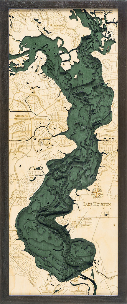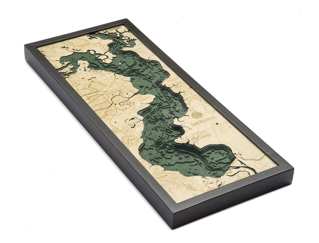 Lake Houston, Texas 3-D Nautical Wood Chart, Medium, 13.5" x 31"