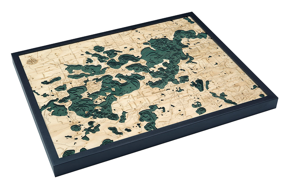 Lake Minnetonka, Minnesota 3-D Nautical Wood Chart, Large, 24.5" x 31"