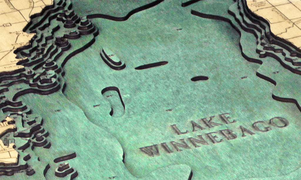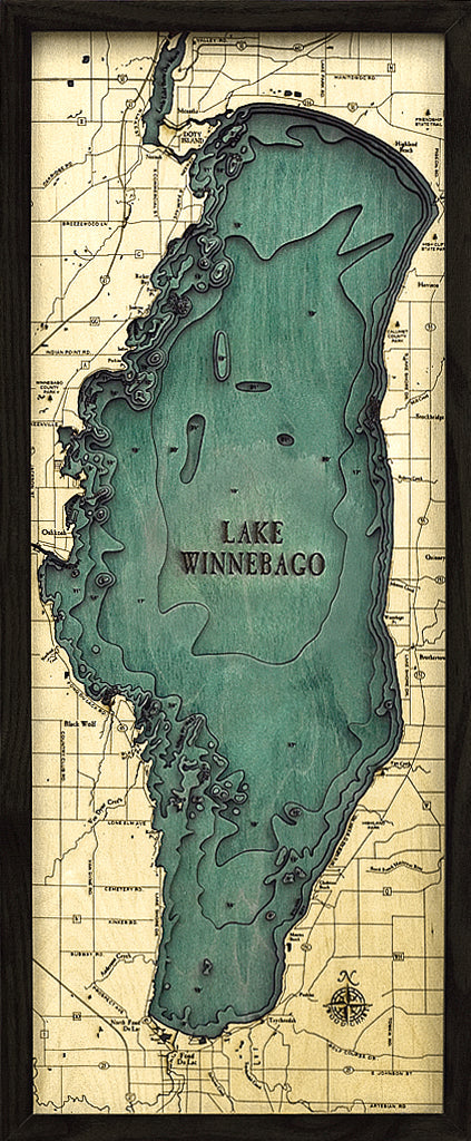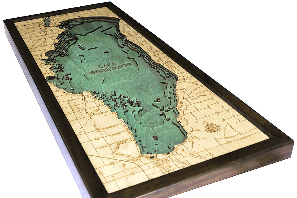 Lake Winnebago, Wisconsin 3-D Nautical Wood Chart, Medium, 13.5" x 31"