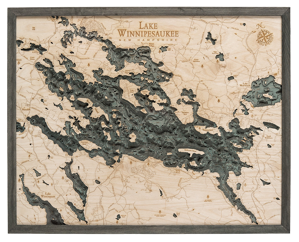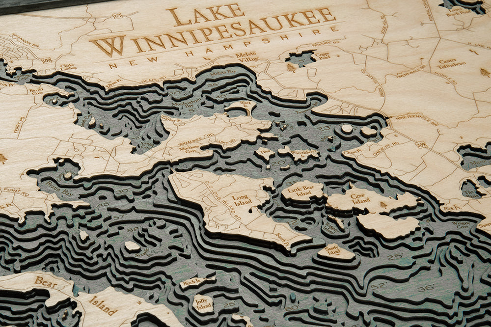 Lake Winnipesaukee, New Hampshire 3-D Nautical Wood Chart, Large, 24.5" x 31"
