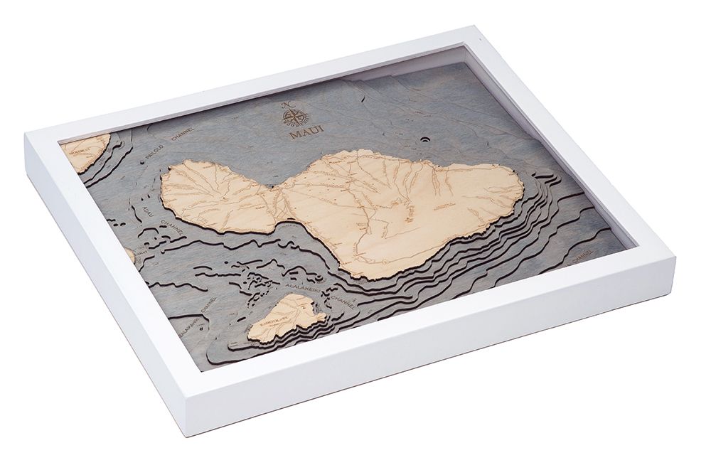 Maui, Hawaii 3-D Nautical Wood Chart, Small, 16" x 20"