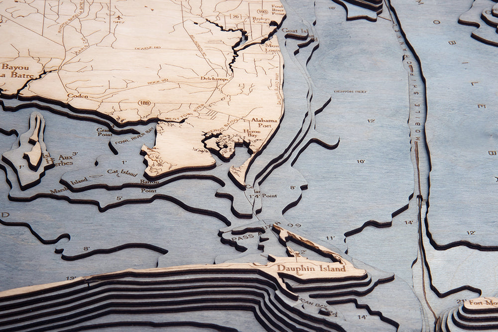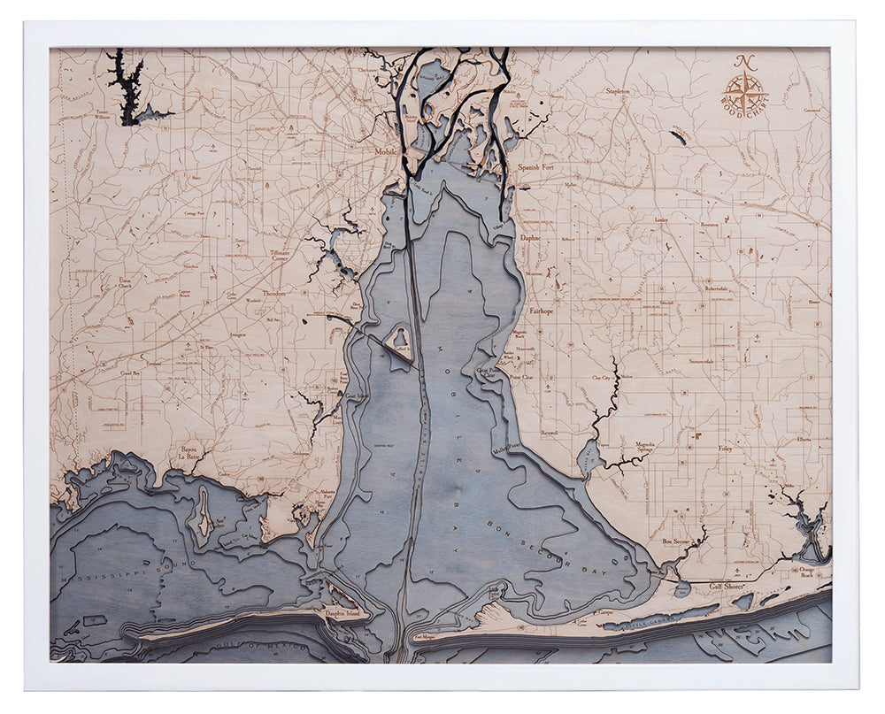 Mobile, Alabama 3-D Nautical Wood Chart, Large, 24.5" x 31"