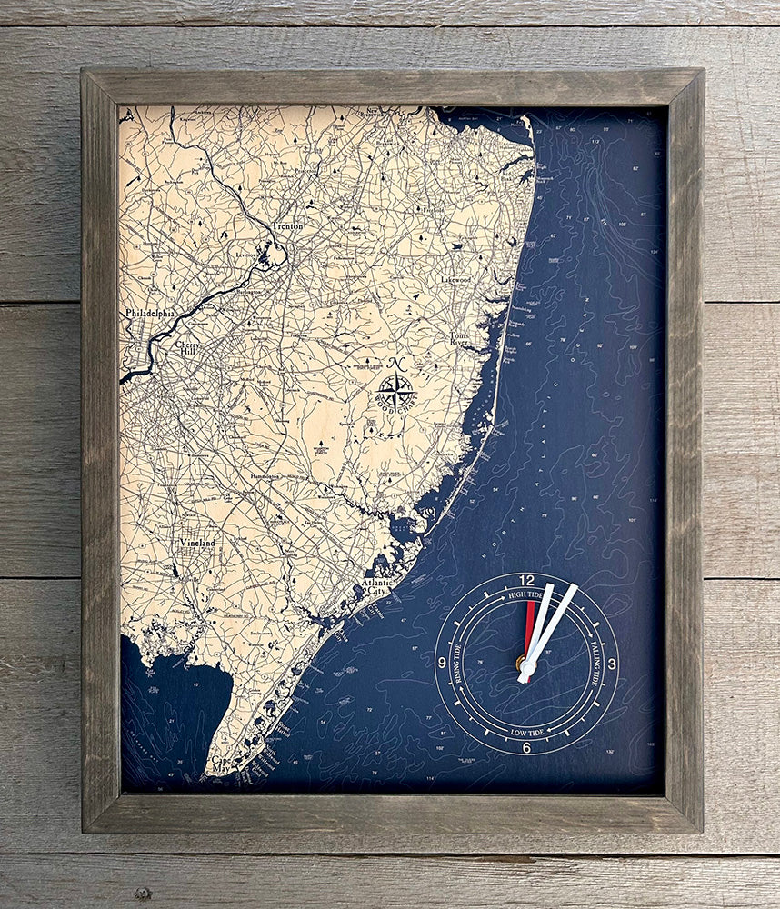 Nautical Framed Tide Clock of The New Jersey Coast Details: