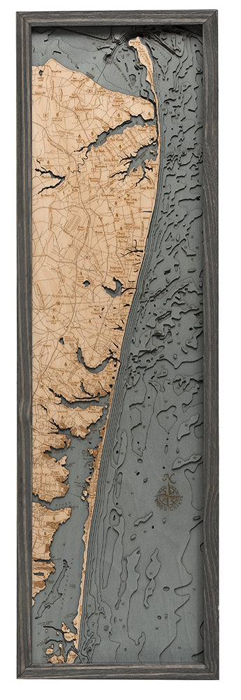 New Jersey North Shore 3-D Nautical Wood Chart, Narrow, 13.5" x 43"