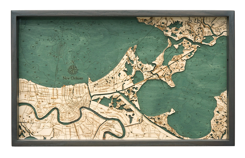 As seen in the details of the New Orleans serving tray, the city is surrounded by water and tells a story in every street and alleyway. The names and locations of the points of interest are etched into the high-quality Birch and the wood chart clearly identifies the topography and bathymetry of each body of water. Laser-cut detail creates a fascinating perspective to be enjoyed time and again as you use your serving tray for entertaining guests or keep it all to yourself, elevating a quiet tea service for one.