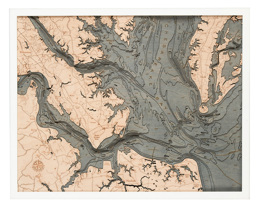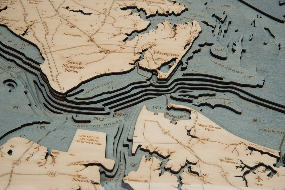 Invite the historic prominence of this great city into your home with your own Norfolk, Virginia, 3D nautical wood chart.