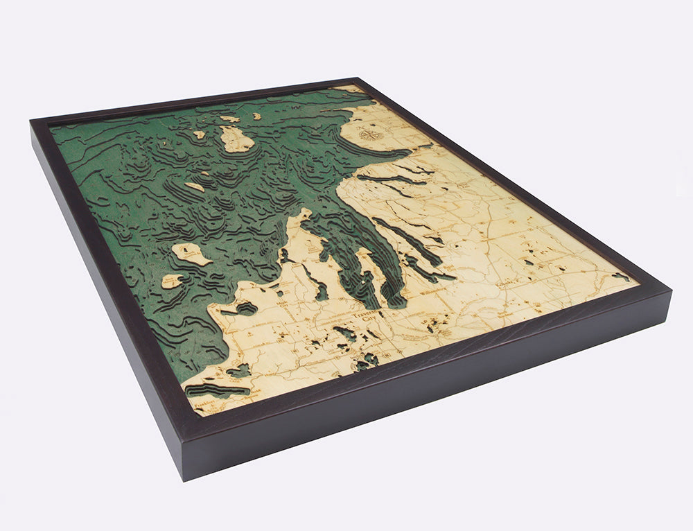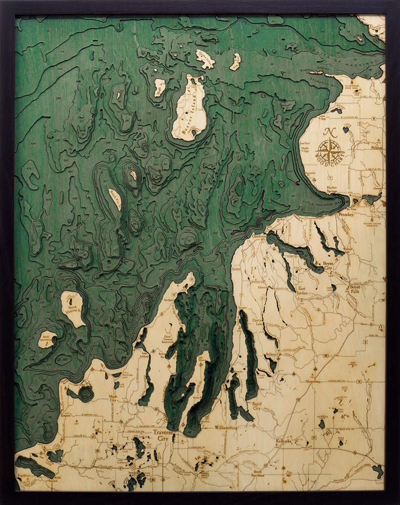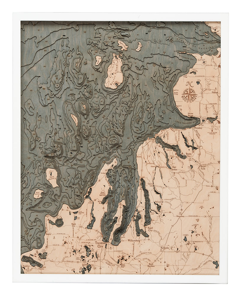 Northwest Lower Michigan 3-D Nautical Wood Chart, Large, 24.5" x 31"