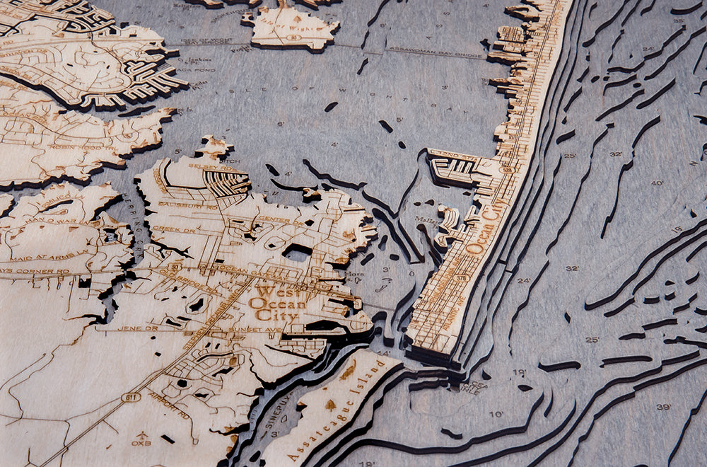 Ocean City, Maryland 3-D Nautical Wood Chart, Large, 24.5" x 31"