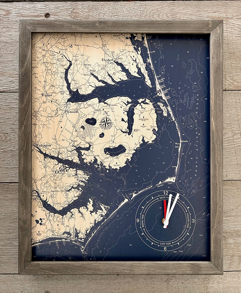 Nautical Framed Tide Clock of Outer Banks Details: