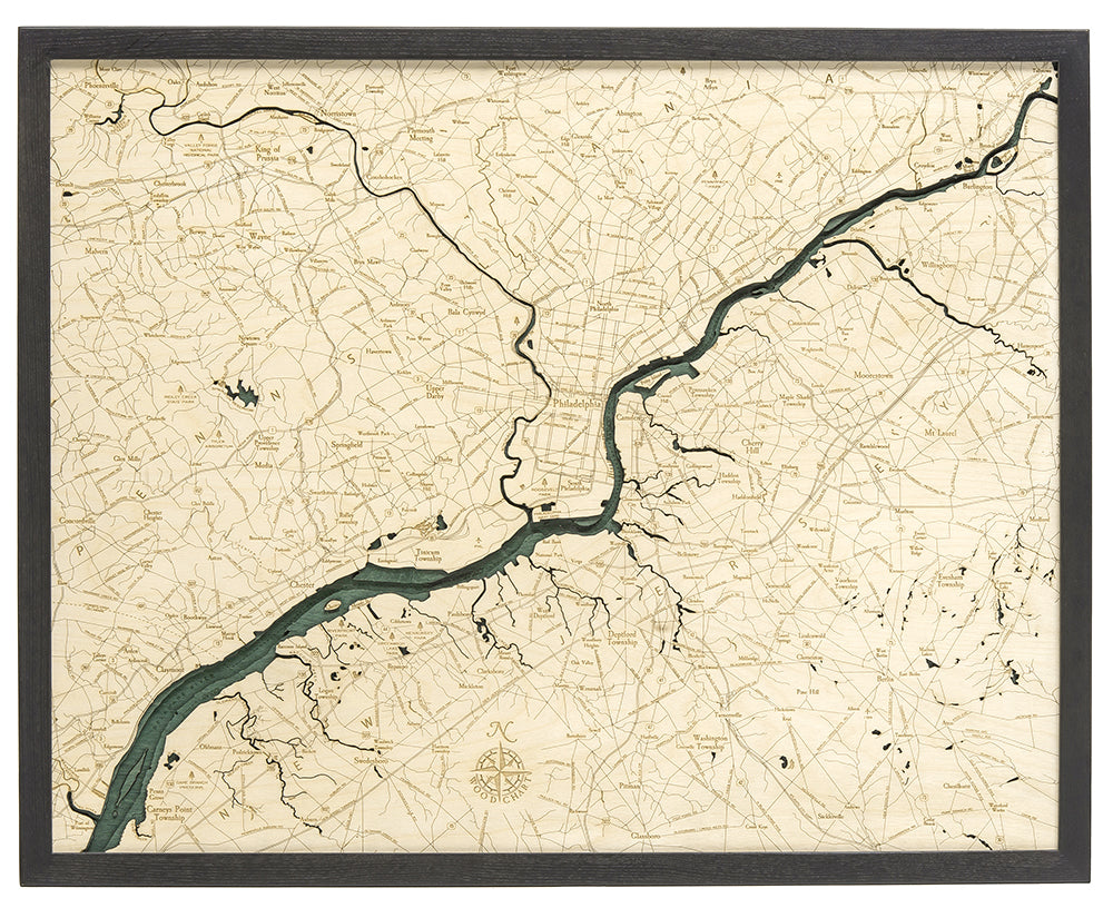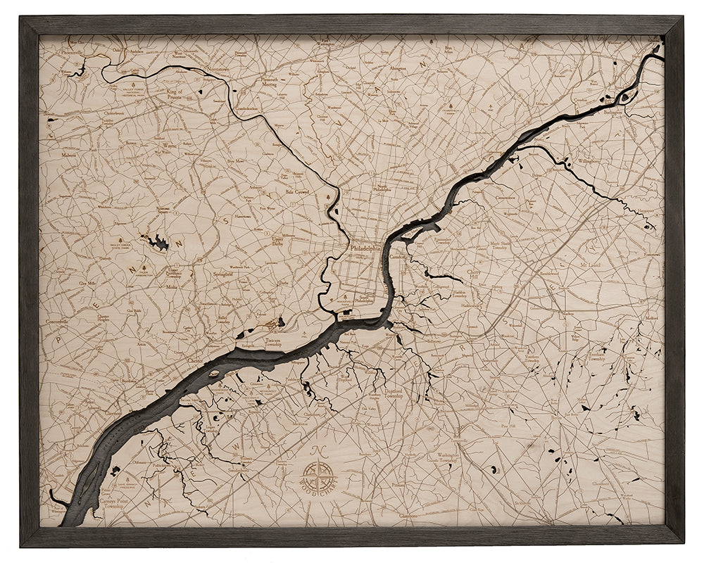 Philadelphia 3-D Nautical Wood Chart, Large, 24.5" x 31"