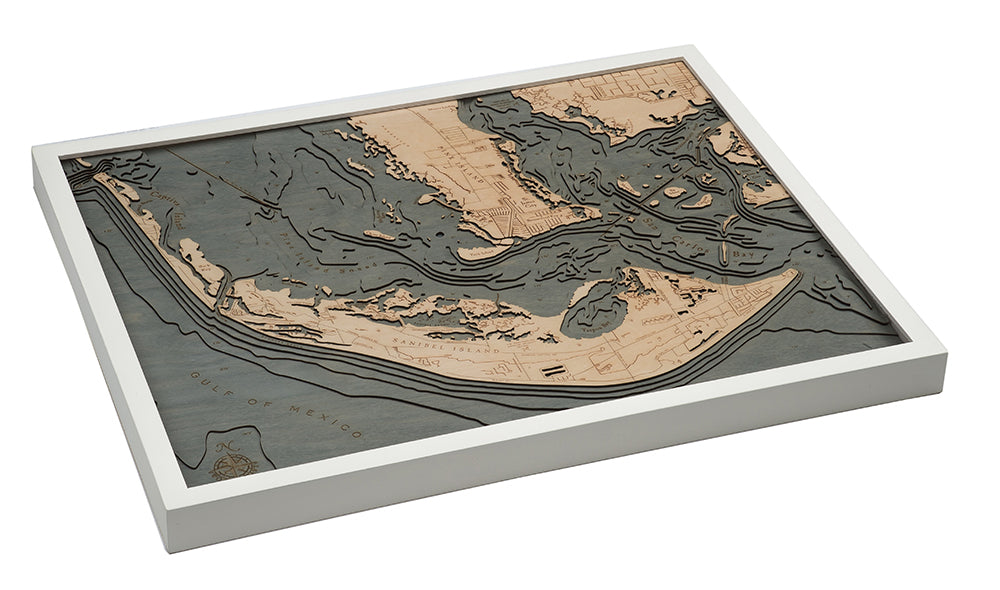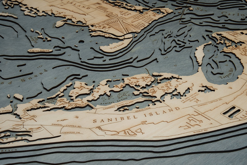 Sanibel Island, Florida 3-D Nautical Wood Chart, Large, 24.5" x 31"