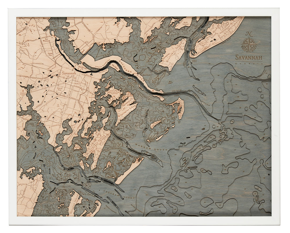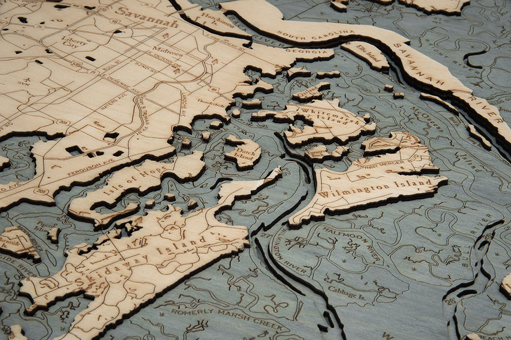 Welcome the southern charm of Savannah into your home with this 3D nautical wood chart.