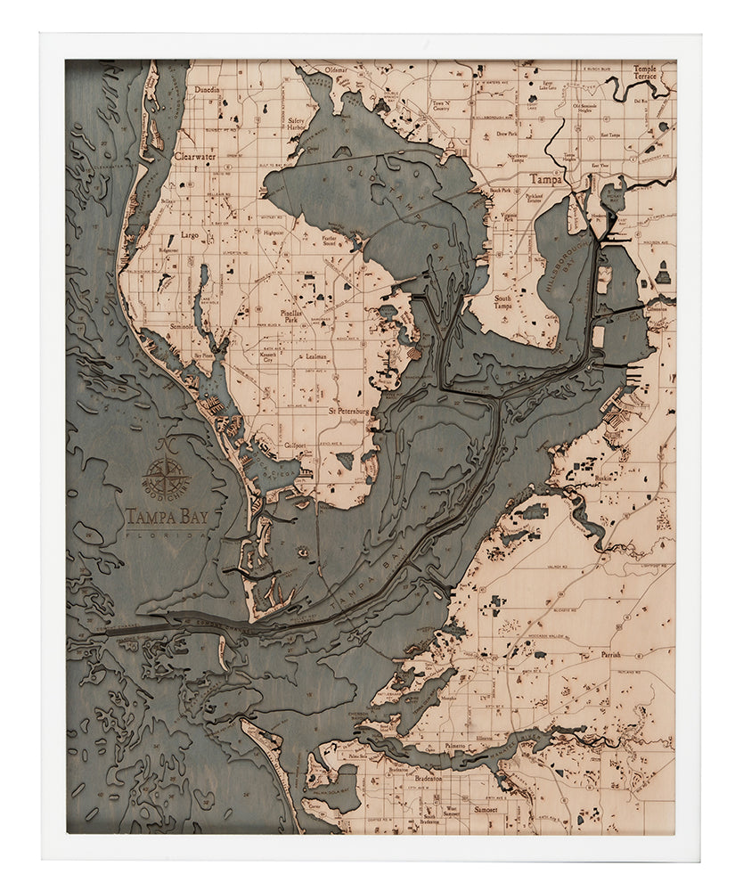 Bring home the winning spirit of Tampa Bay, Florida, with this stunning 3D nautical wood chart.