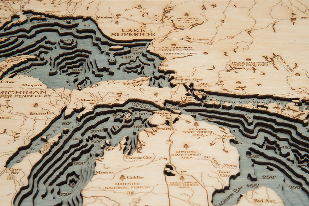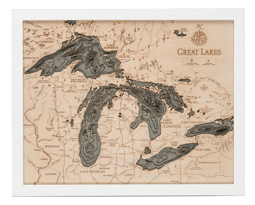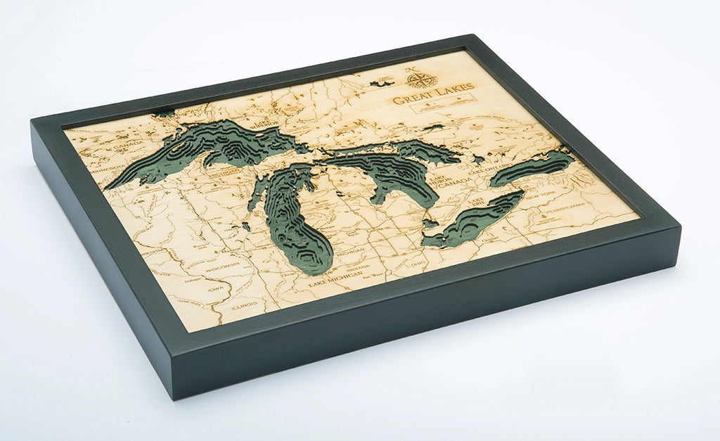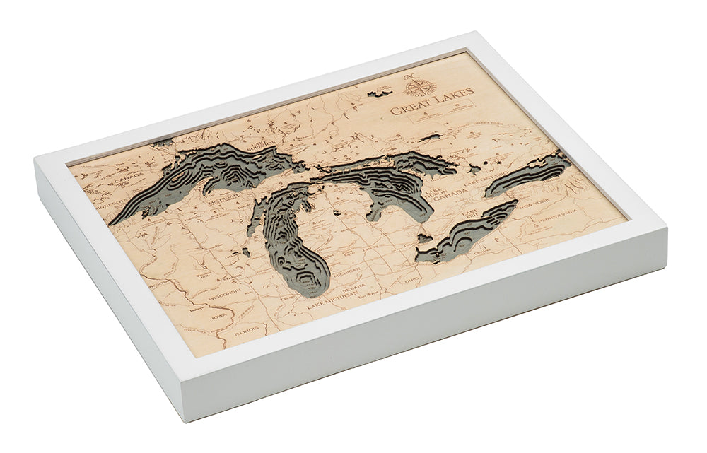 The Great Lakes will become your home away from home, and this 3D nautical wood chart will keep them close to your heart!