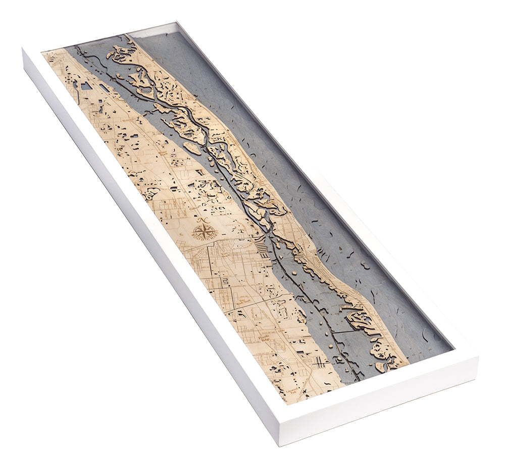 Indian River, Florida 3-D Nautical Wood Chart, Narrow, 13.5" x 43"